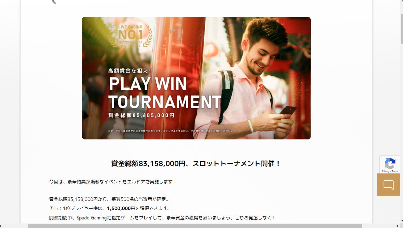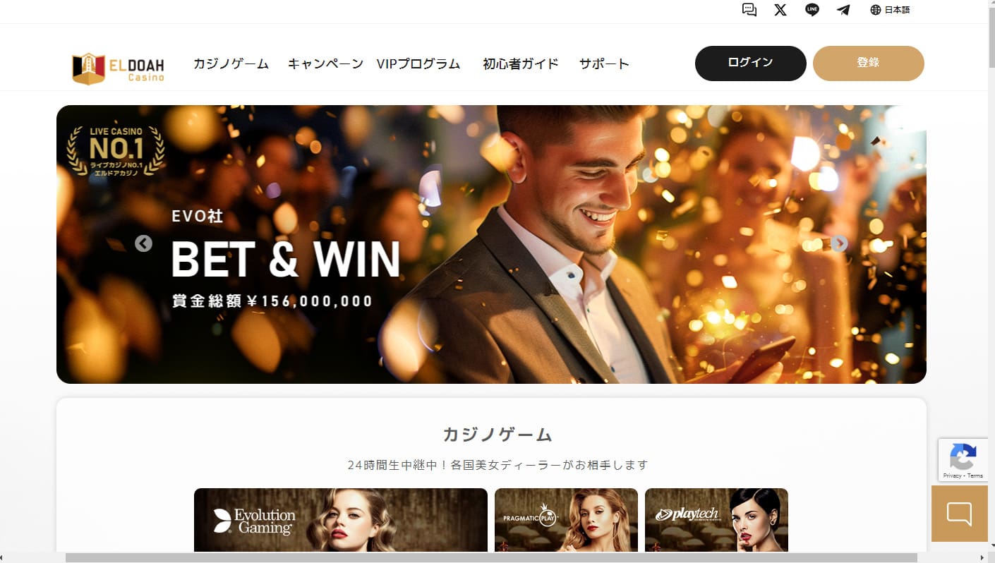2016年からスタートしたエルドアは、どなたでも楽しめるオンラインカジノサイトです。特に「ライブカジノ」に特化したオンラインカジノで、さらにスロット、スポーツベットなど様々なゲームをプレイいただけます。