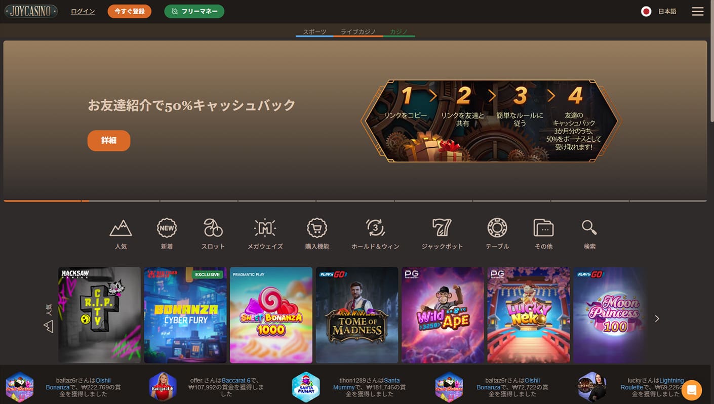 これらの要因により、Joy Casinoは、信頼性が高く、楽しく、安全なオンラインカジノ体験を求めるプレイヤーにとって魅力的な選択肢となっています。